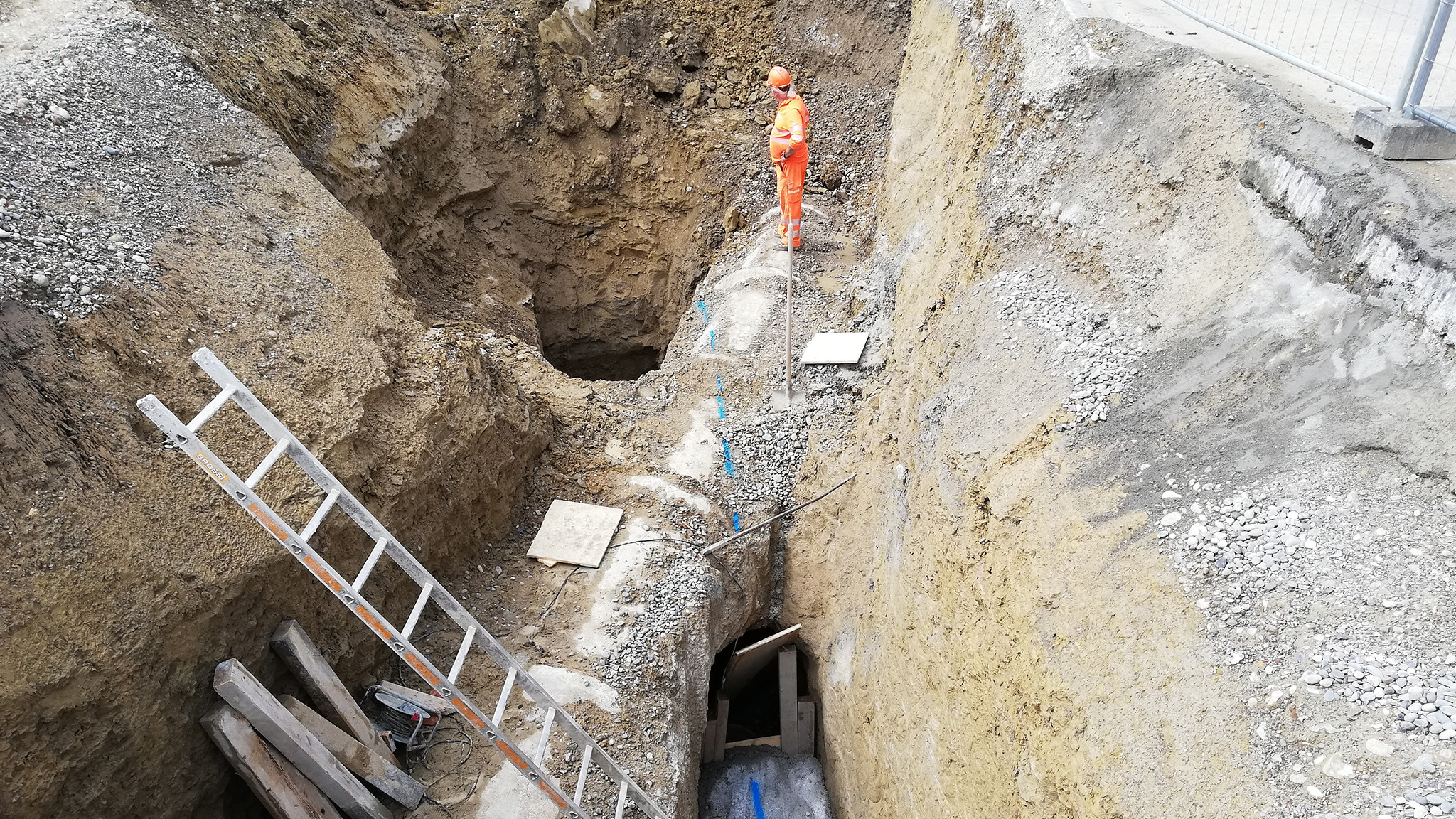 Das bestehende Gelände wurde zunächst durch die Vermessungsabteilung der ING PLUS aufgenommen. Dies diente den beteiligten Architekten und Planern als Planungsgrundlage. In weiteren Schritten hat die Vermessungsabteilung den Aushubplan und das Baustellenfixpunktnetz erstellt.