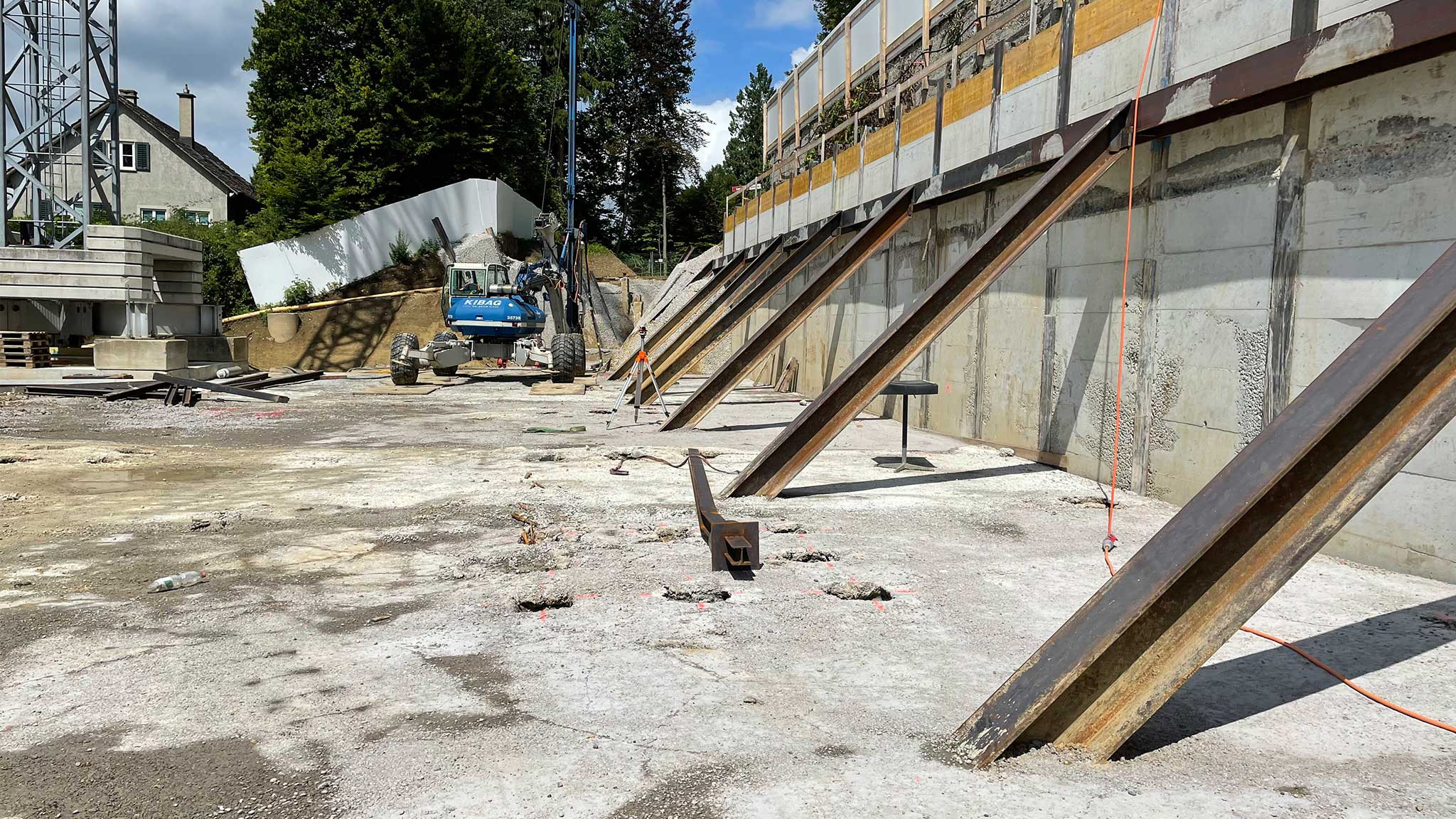 Die Hanglage und unmittelbare Nähe zu den umliegenden, historischen Bauten erforderten umfangreiche Überwachungsmassnahmen. Vor Baubeginn wurden Rissprotokolle erstellt. Während der Bauphase wurde die Baustelle mittels Erschütterungsmessungen (Geophone) sowie tachymetrischen Deformationsmessungen überwacht.