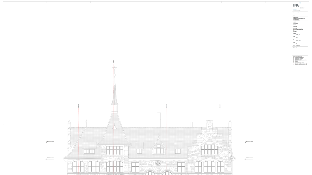 Zu Projektbeginn wurden Bestandesaufnahmen der Gebäude mittels 3D-Laserscanning durchgeführt und daraus Grundriss-, Schnitt- und Fassadenpläne erstellt. Für das Baubewilligungsverfahren übernahm ING PLUS zudem die Absteckung des Baugespanns. Während der Bauphase unterstützte ING PLUS das Projektteam mit diversen Vermessungsaufnahmen und Absteckungsarbeiten, um eine präzise Umsetzung der Planung sicherzustellen.