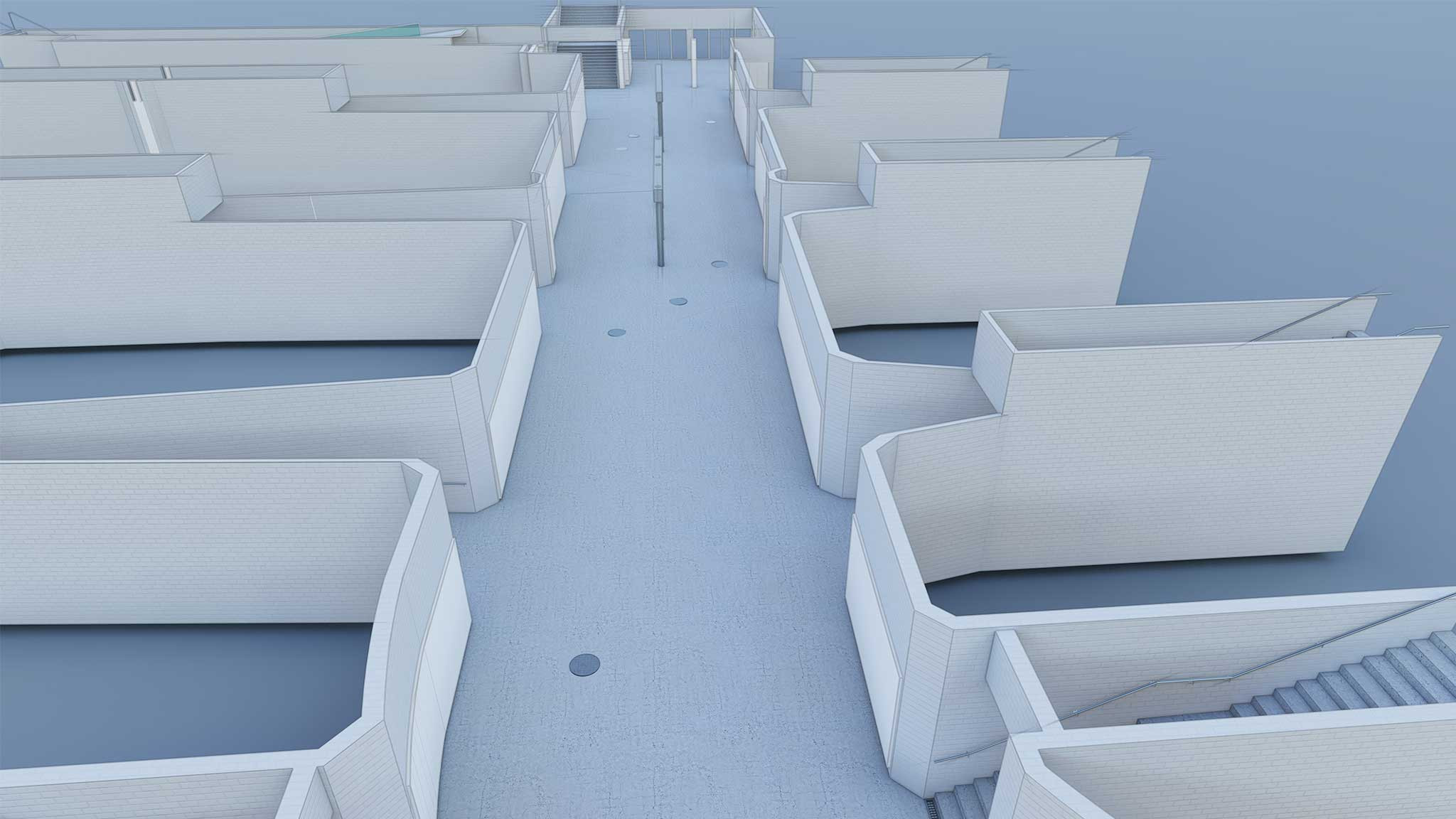 Aus dem 3D-Modell wurde ein Grundriss als Aufsicht, sowie ein zusätzlicher Grundriss mit detallierter Deckenuntersicht generiert. Zudem wurden im 3D-Modell insgesamt 24 Schnitte positioniert und als 2D-Plandaten aufbereitet bzw. exportiert. Zweck vom Modell war eine detaillierte Daten- bzw. Projektierungsgrundlage für ein Facelift der Personenunterführung.