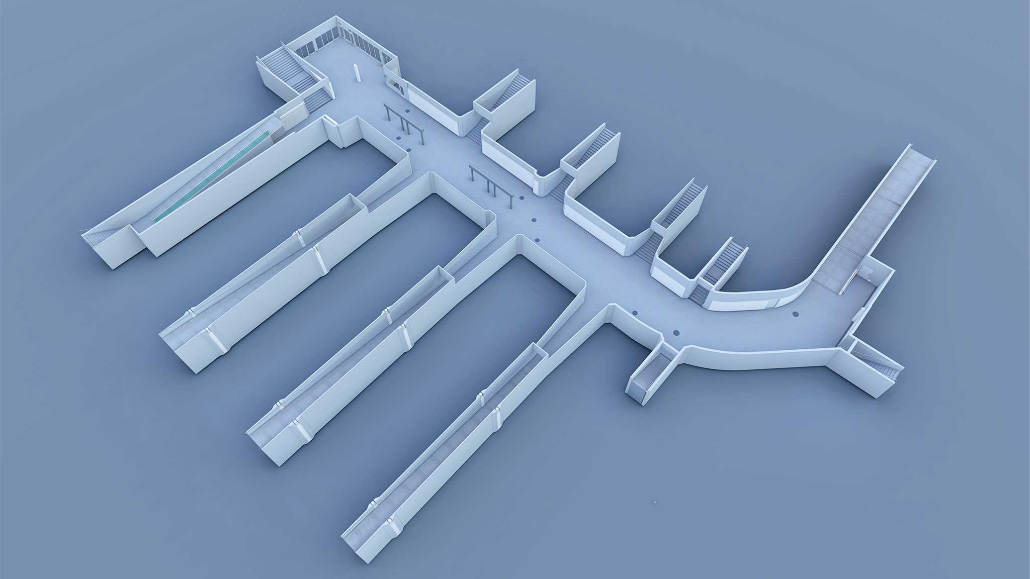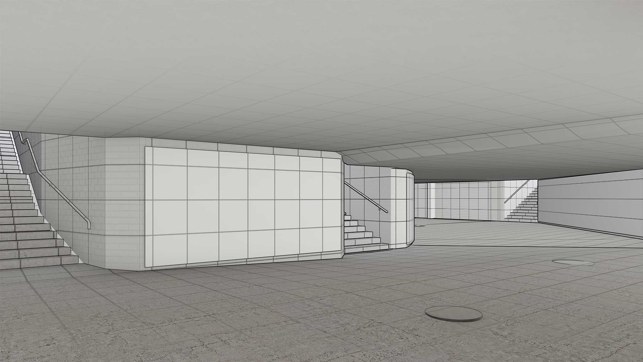 ING PLUS hat die Personenunterführung Süd am SBB Bahnhof in Winterthur mittels 3D-Laserscanning vermessen und aus den Aufnahmen ein 3D-Modell modelliert.