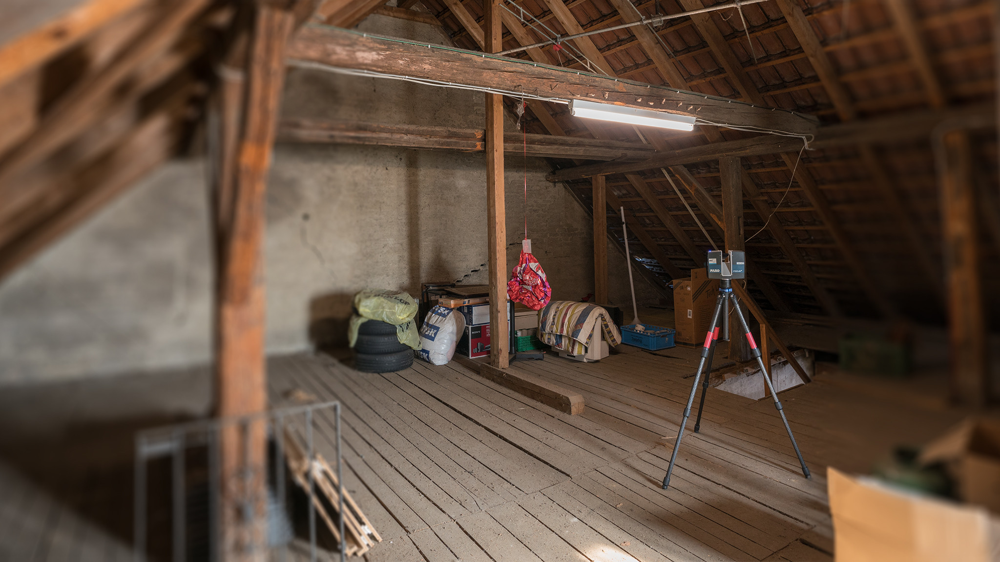 Sämtliche Geschosse wurden mit dem Laserscanner digital erfasst. Aus der registrierten Punktwolke wurden im CAD Grundrisse, Ansichten und ein Längs- sowie zwei Querschnitt im Massstab 1:50 erzeugt. Die Gebäudeaufnahme von ING PLUS dient als Grundlage für die Planung der Sanierungsmassnahmen.