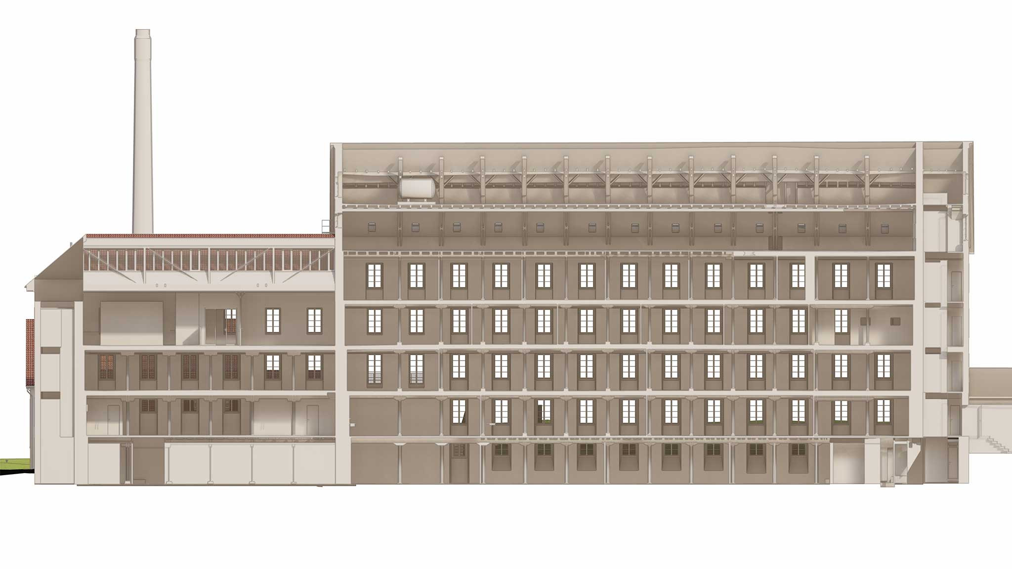 Für den Umbau vom Kraftwerk Kollbrunn hat ING PLUS mittels Laserscanning eine Gebäudeaufnahme von der Spinnerei, dem Kraftwerk und der anliegenden Villa auf einer Gesamtfläche von über 10'000 Quadratmetern ausgeführt.