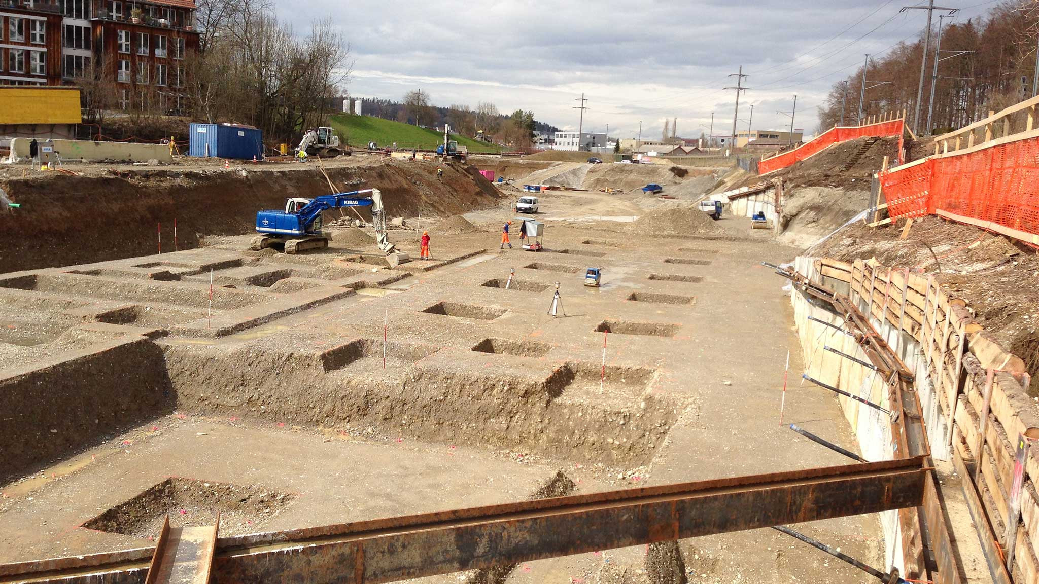 ING PLUS hat beim Etzbergpark in Winterthur geodätische Aufnahmen der Baugrubensohle vorgenommen, die Aushubkubatur berechnet und sämtliche Absteckungsarbeiten am Bau ausgeführt.