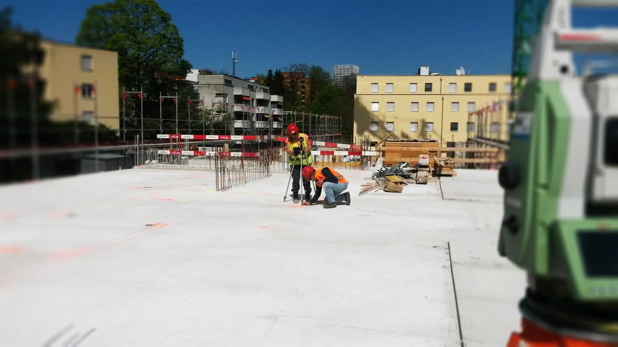 Zu Beginn vom Projekt hat ING PLUS über einen Zeitraum von mehr als einem Jahr die Überwachung der Baugrube mittels Deformationsmessungen durchgeführt. Im Projektverlauf wurden über die gesamte Bauzeit mehr als 10'000 Punkte abgesteckt und mehrere 100 Meterrisse am Bau markiert.