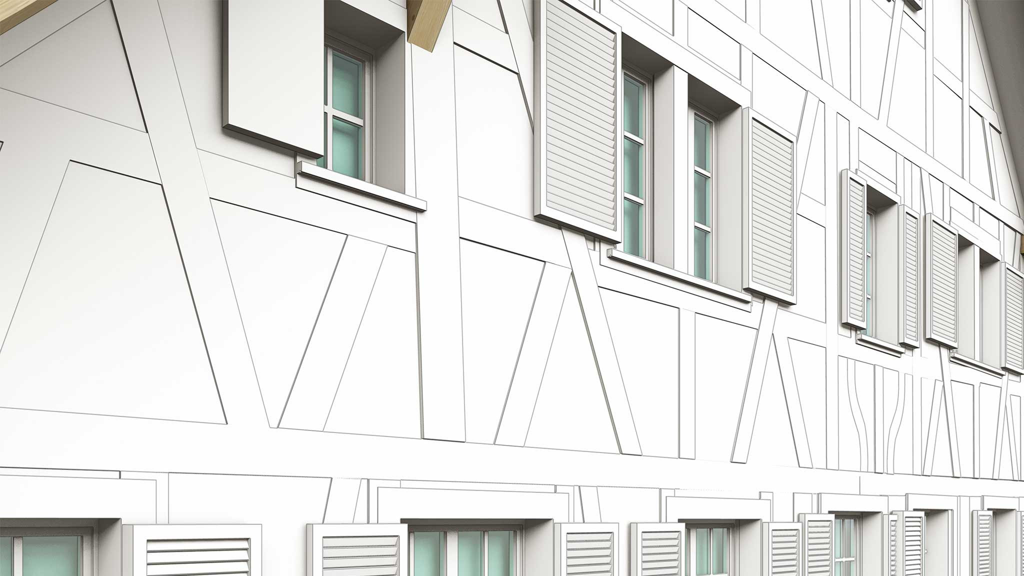 ING PLUS hat in Winterthur ZH mit 3D-Laserscanning eine 3D-Aufnahme von einem Riegelhaus ausgeführt und ein detailgetreues 3D-Modell vom Gebäude modelliert.