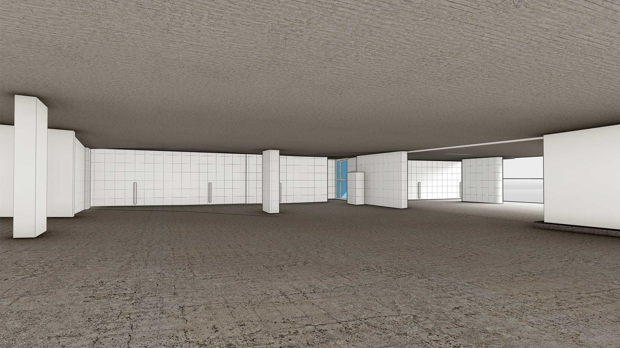 ING PLUS hat die Parkgarage für die Umgestaltung beim Obstmarkt in Herisau AR mit 3D-Laserscanning vermessen und ein 3D-Modell modelliert.