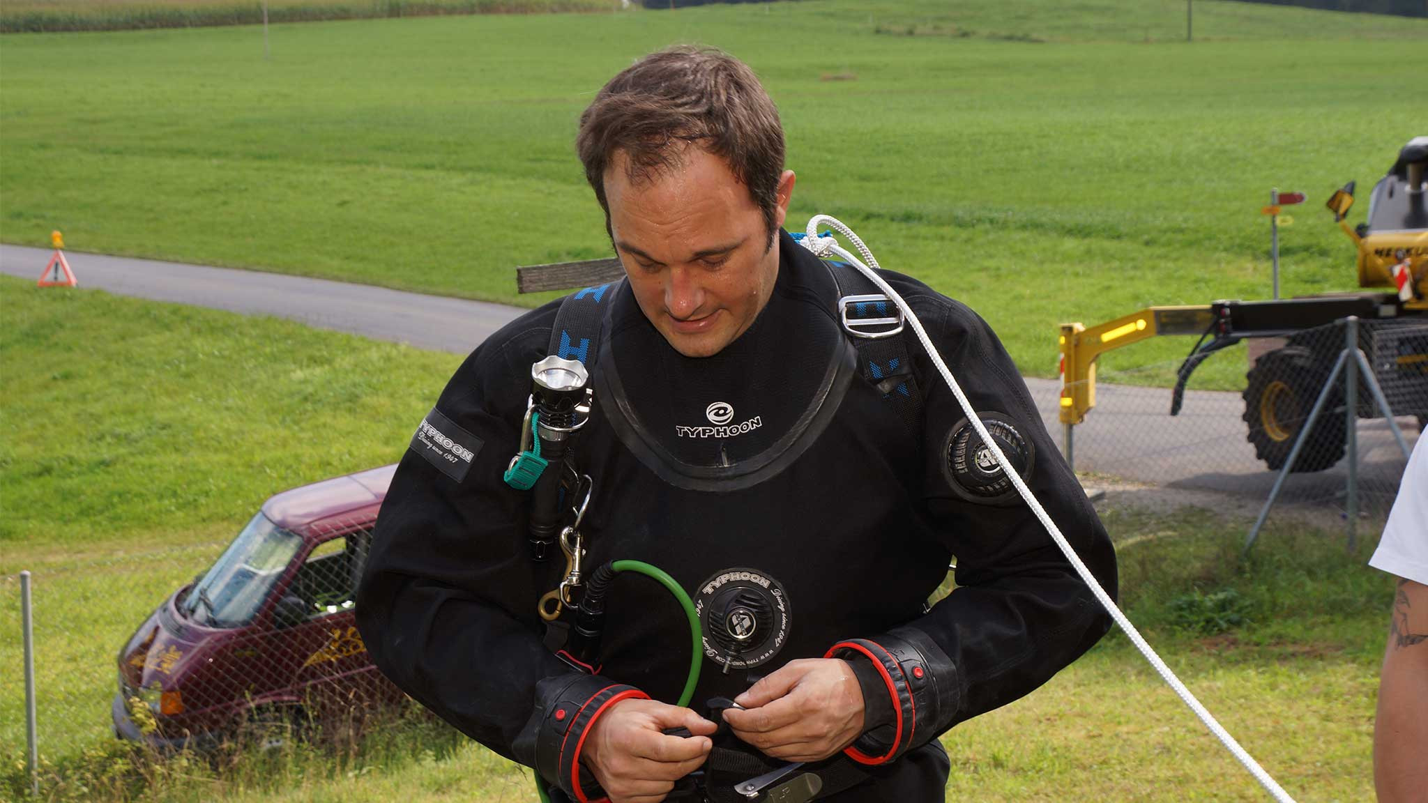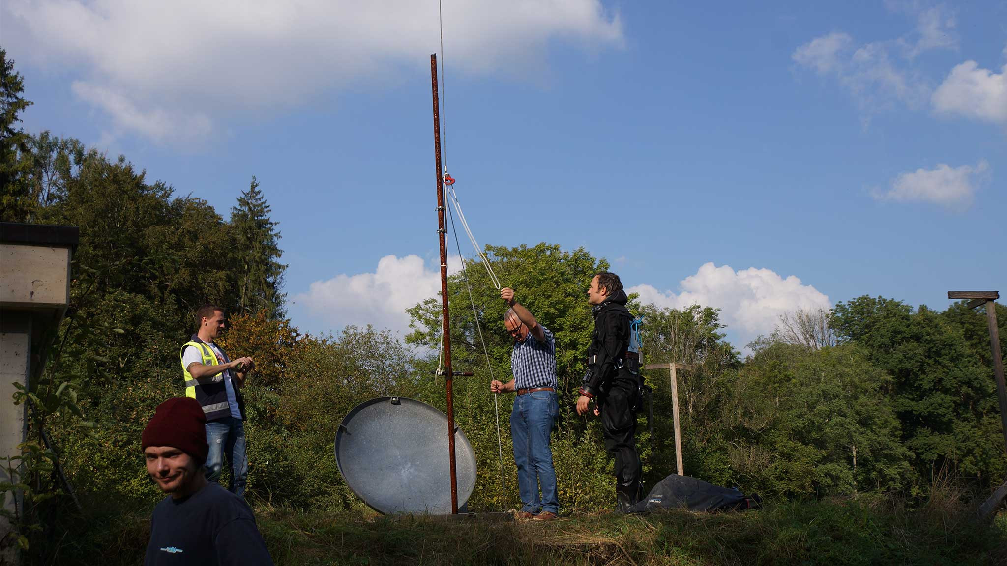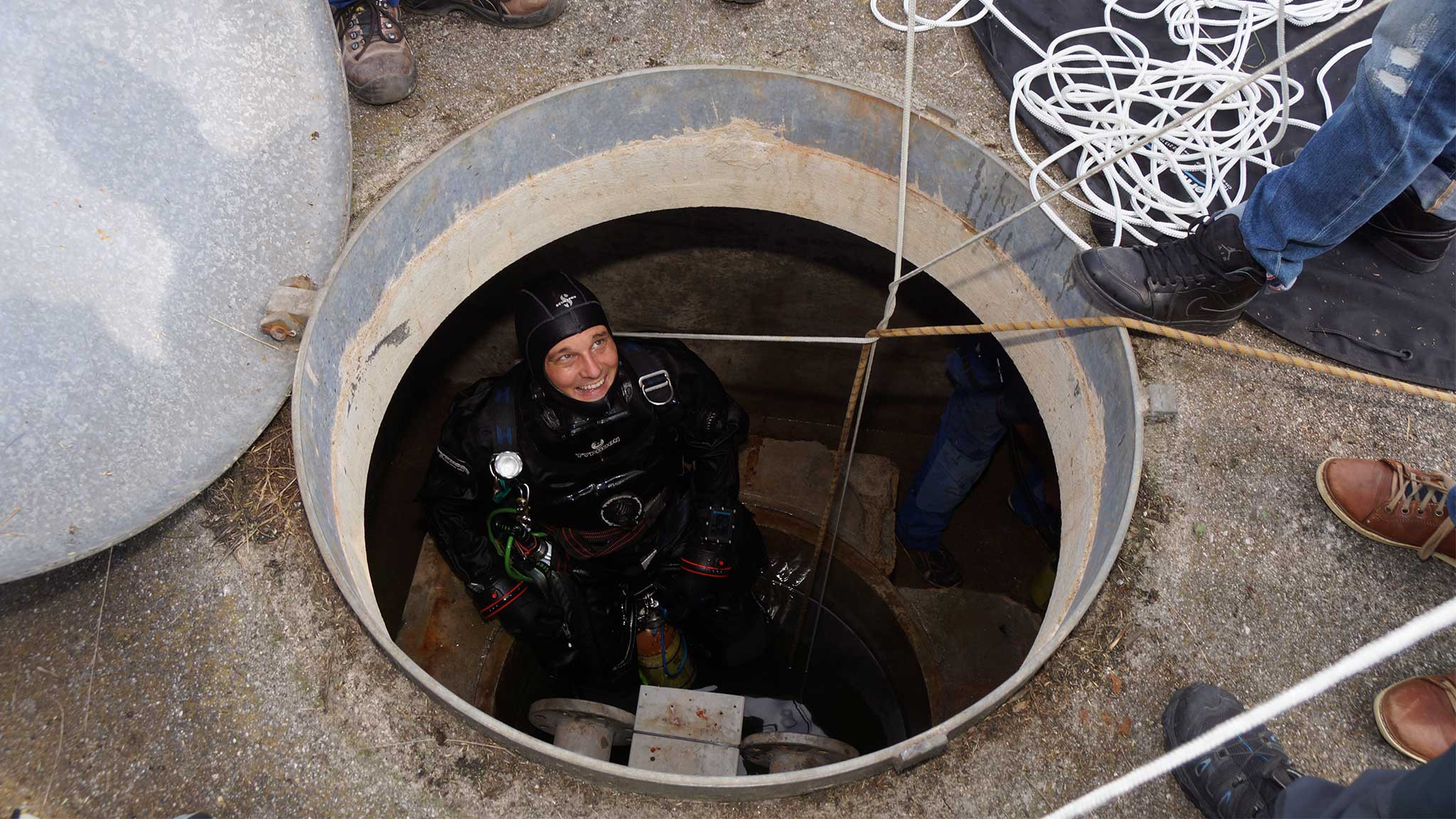 Der Durchmesser des Brunnes beträgt lediglich 1 Meter. Um eine Verunreinigung des Grund- bzw. des Trinkwassers zu vermeiden, wurde vor dem Tauchgang sämtliches Material wie Leine, Seil und Taucheranzug gründlich gereinigt.