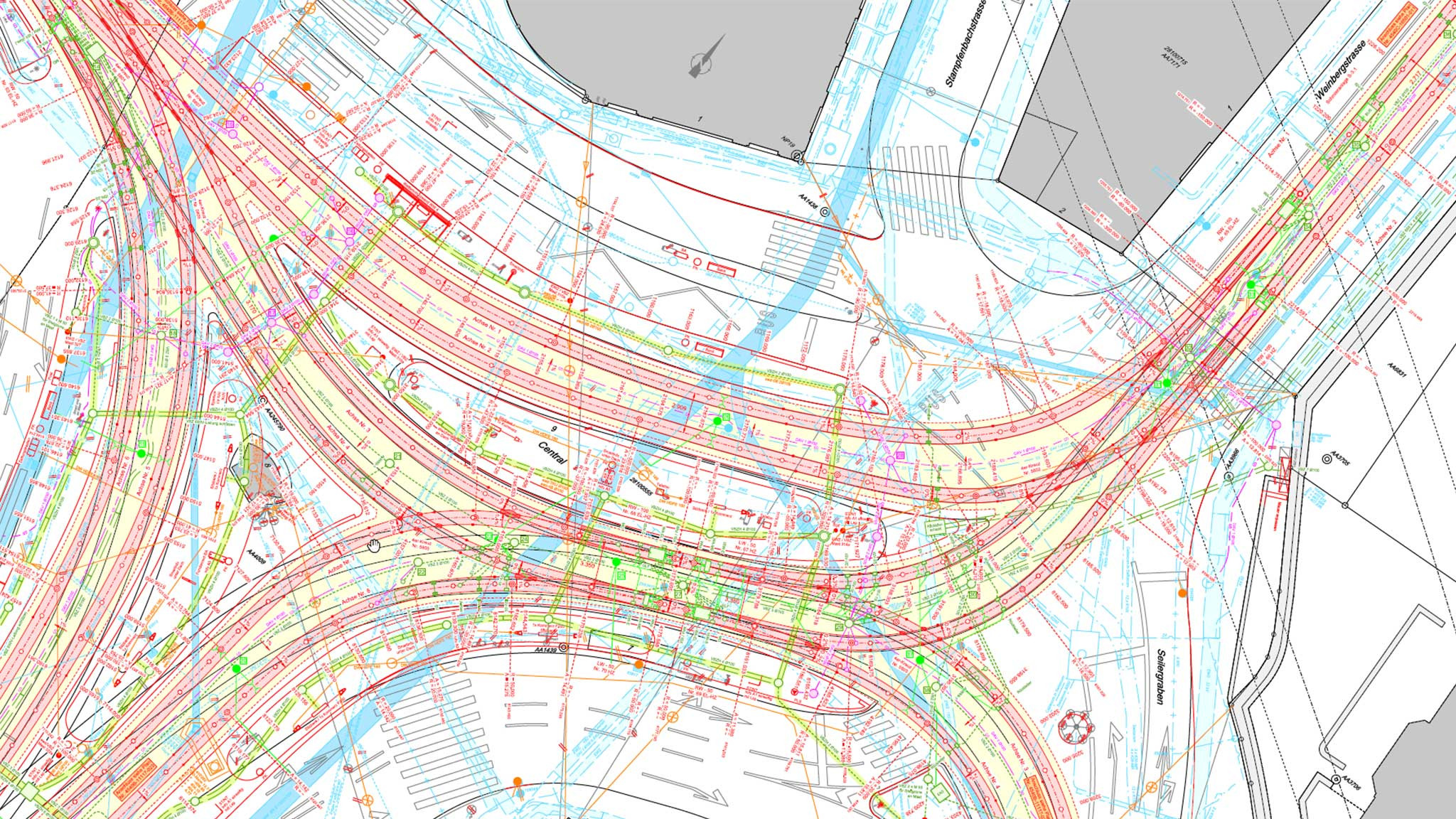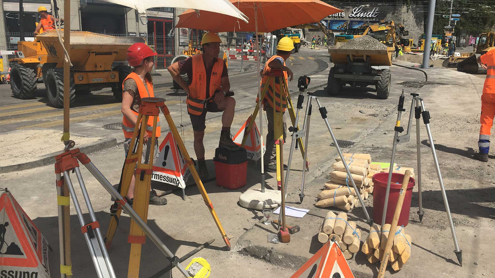 ING PLUS hat bei der Tramhaltestelle Central in Zürich ZH ein spannungsfreies Fixpunktnetz gemessen, 3D-Bestandesaufnahmen vorgenommen und Absteckungsarbeiten im 24h-Schichtbetrieb ausgeführt.