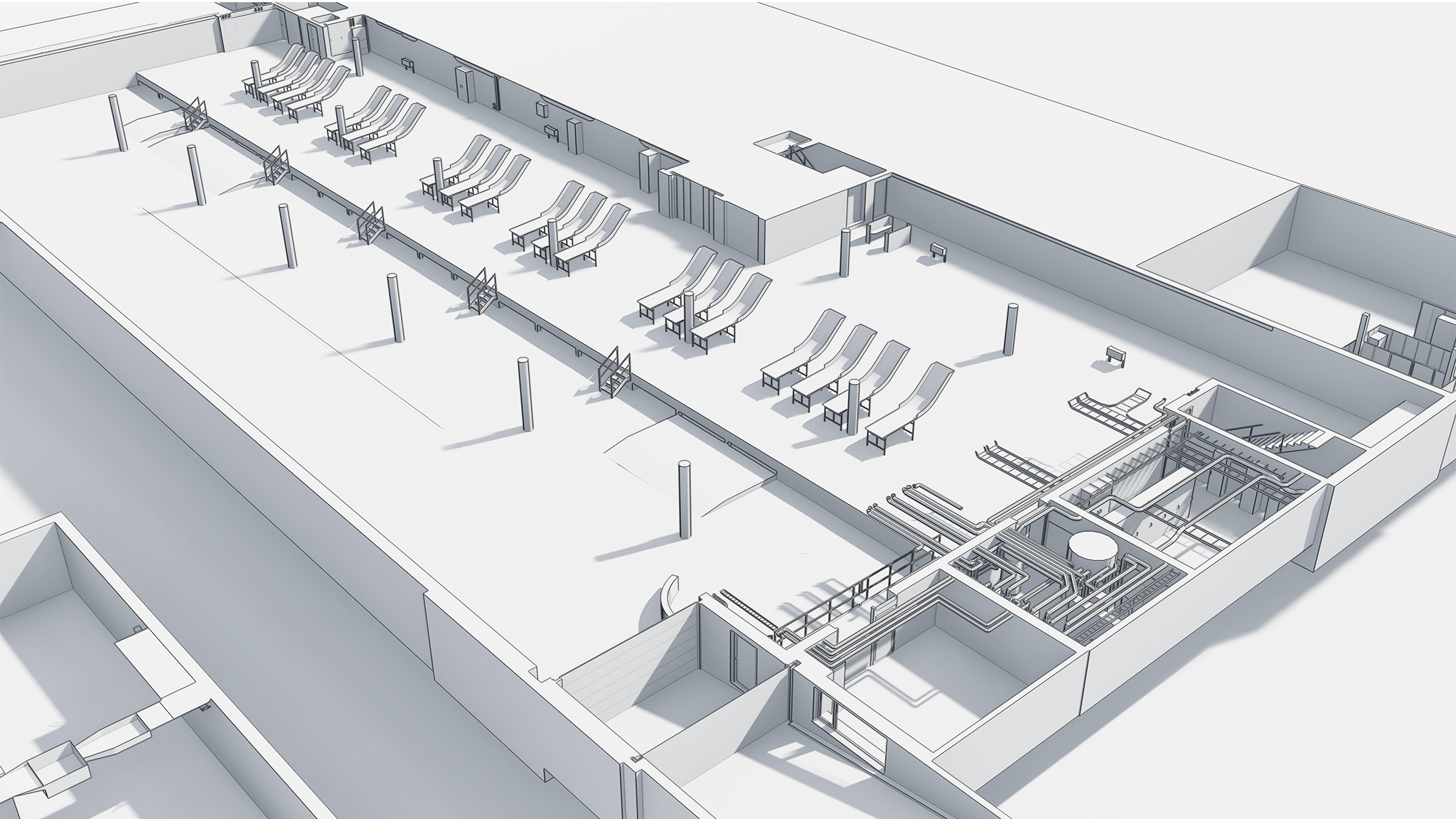 Von der Industriehalle von Sonepar in Wallisellen hat ING PLUS mittels 3D-Laserscanning ein realitätsgetreues 3D-Modell erstellt.
