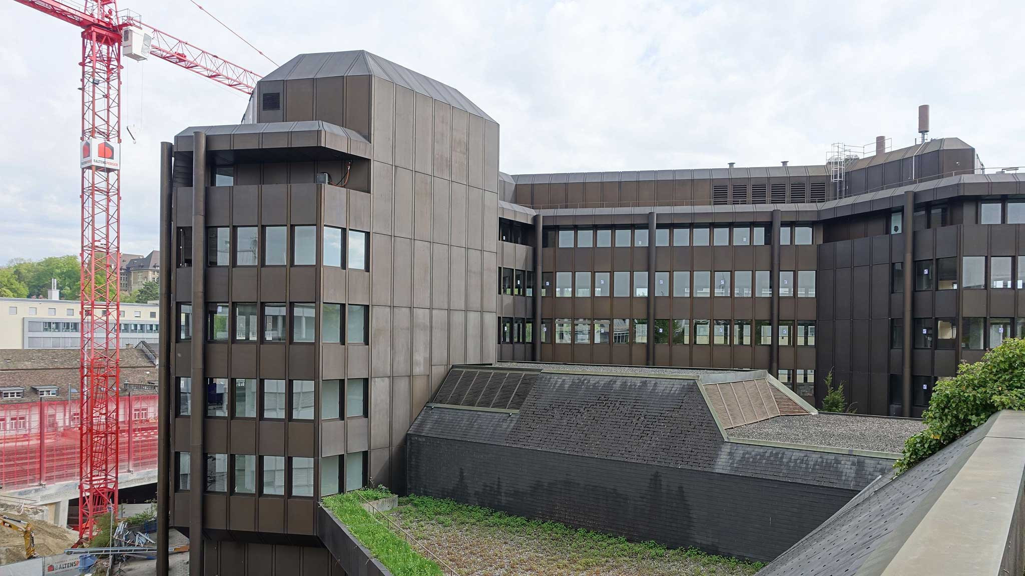 Mit einem Team von fünf Personen hat ING PLUS das Gebäude auf allen Etagen vermessen. Eine Schwierigkeit bestand u.a. darin, den genauen Bezug der Räume, insbesondere auch in den drei unterirdischen Geschossen zu bestimmen. Es existierten zum Teil keine Sichtverbindungen zwischen den Geschossen, zudem fliesst die Eulach in einem Hochwasserkanal quer durch das Gebäude. Die erarbeiteten Grundrisse dienen den Fachplanern als Plangrundlage für eine Modernisierung des Gebäudekomplexes und der haustechnischen Anlagen. In einem zweiten Schritt wurden die mehrschichtig aufgebauten, polygonalen Fassaden vom Gebäude mit 3D-Laserscanning erfasst und eine massstabsgerechte Abwicklung der Fassadenansichten als Projektion im CAD gezeichnet.
