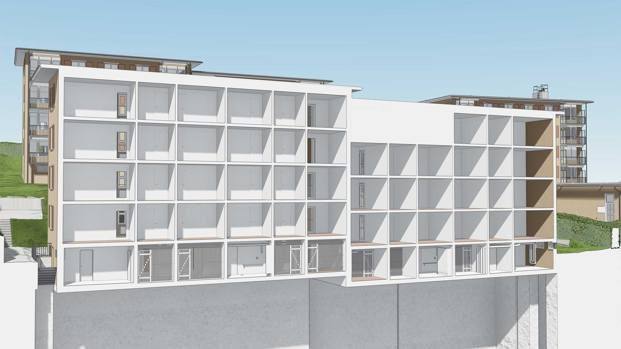 Aufgrund der Grösse des Projekts erfolgte die Aufnahme und Datenlieferung in Etappen über mehrere Monate. Eine besondere Herausforderung stellte die Koordination des Zugangs zu den nahezu vollständig bewohnten Wohnungen dar, was eine sorgfältige Planung und enge Abstimmung mit den Bewohnern erforderte. Dank einer strukturierten Vorgehensweise konnte ein hochwertiges und umfassendes 3D-Modell erstellt werden, welches als Grundlage für zukünftige Planungen und Analysen dient.