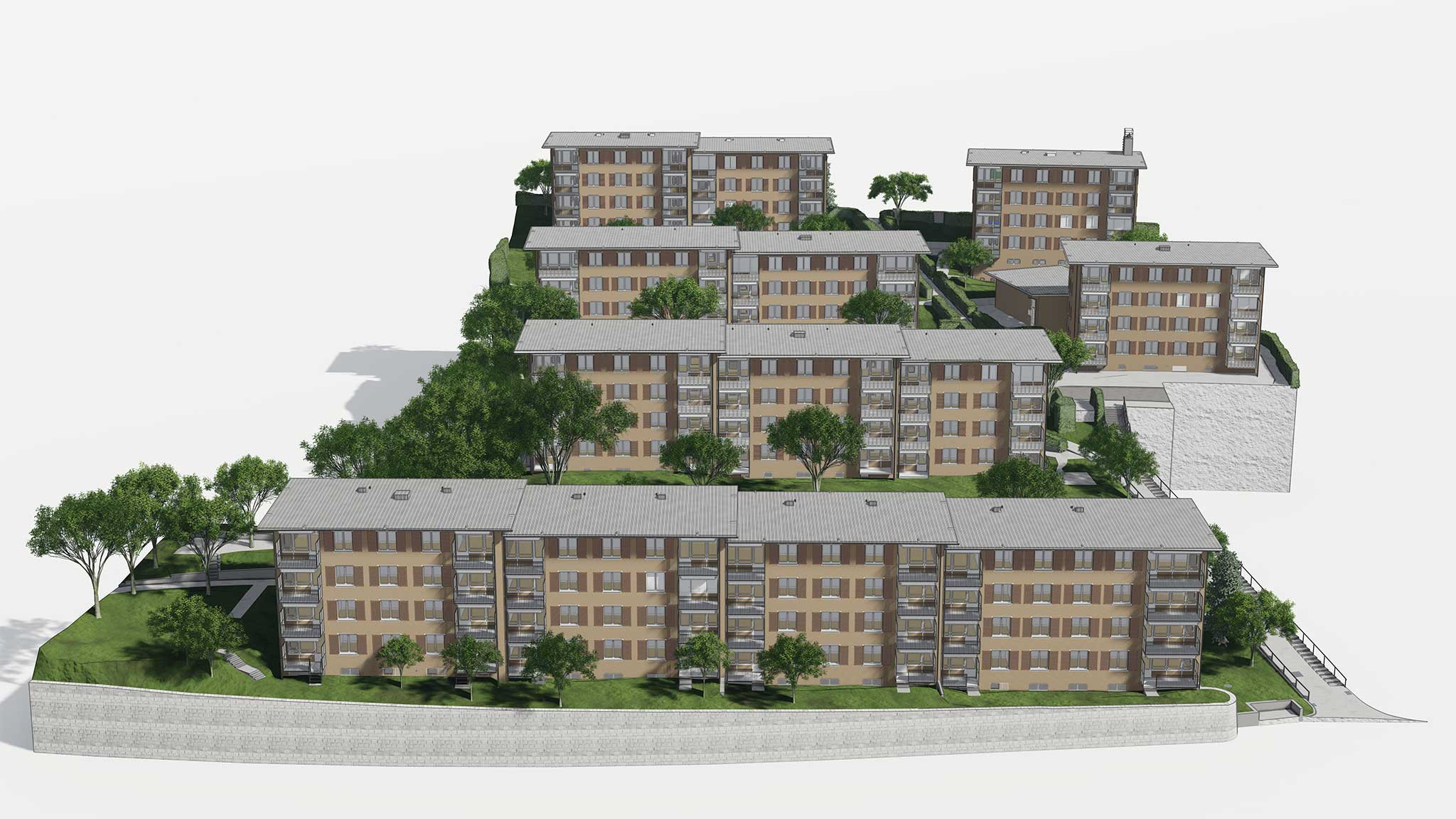 Aufgrund der anstehenden Sanierung hat ING PLUS eine Gebäudeaufnahme der Siedlungen am Waidfussweg I + II vorgenommen. Insgesamt wurden 14 Mehrfamilienhäuser mit einer Gesamtfläche von über 11'000 Quadratmetern aufgenommen und ausgewertet.